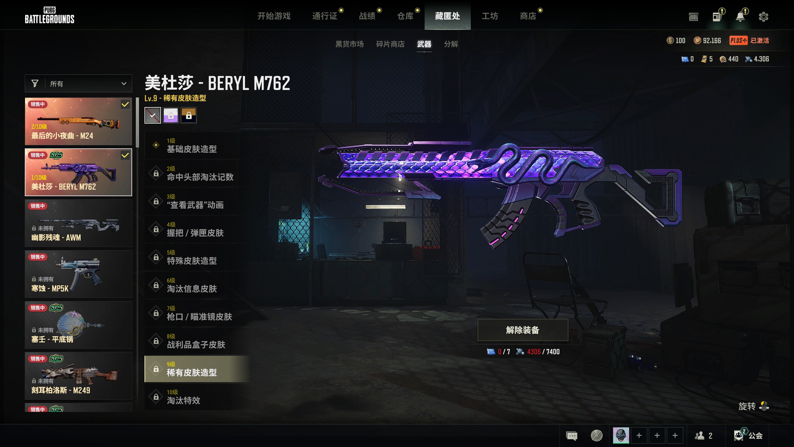 二级密码123456布加迪跑车-1美杜莎762-2级M24-猎手416-寒冬98K-熔岩SKS-金面