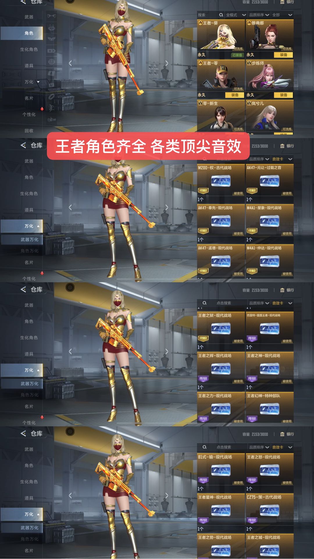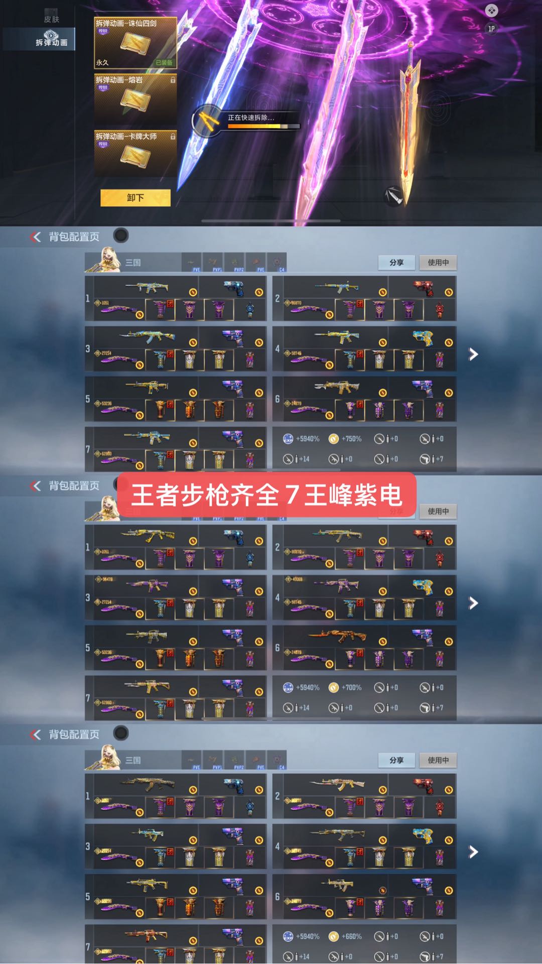 【苹果】 V10凤雏☆王者星神☆王者白虎☆7王峰紫电☆王者魄怒力紫电☆满王者步枪☆满狙击满特效☆满三国☆生化满