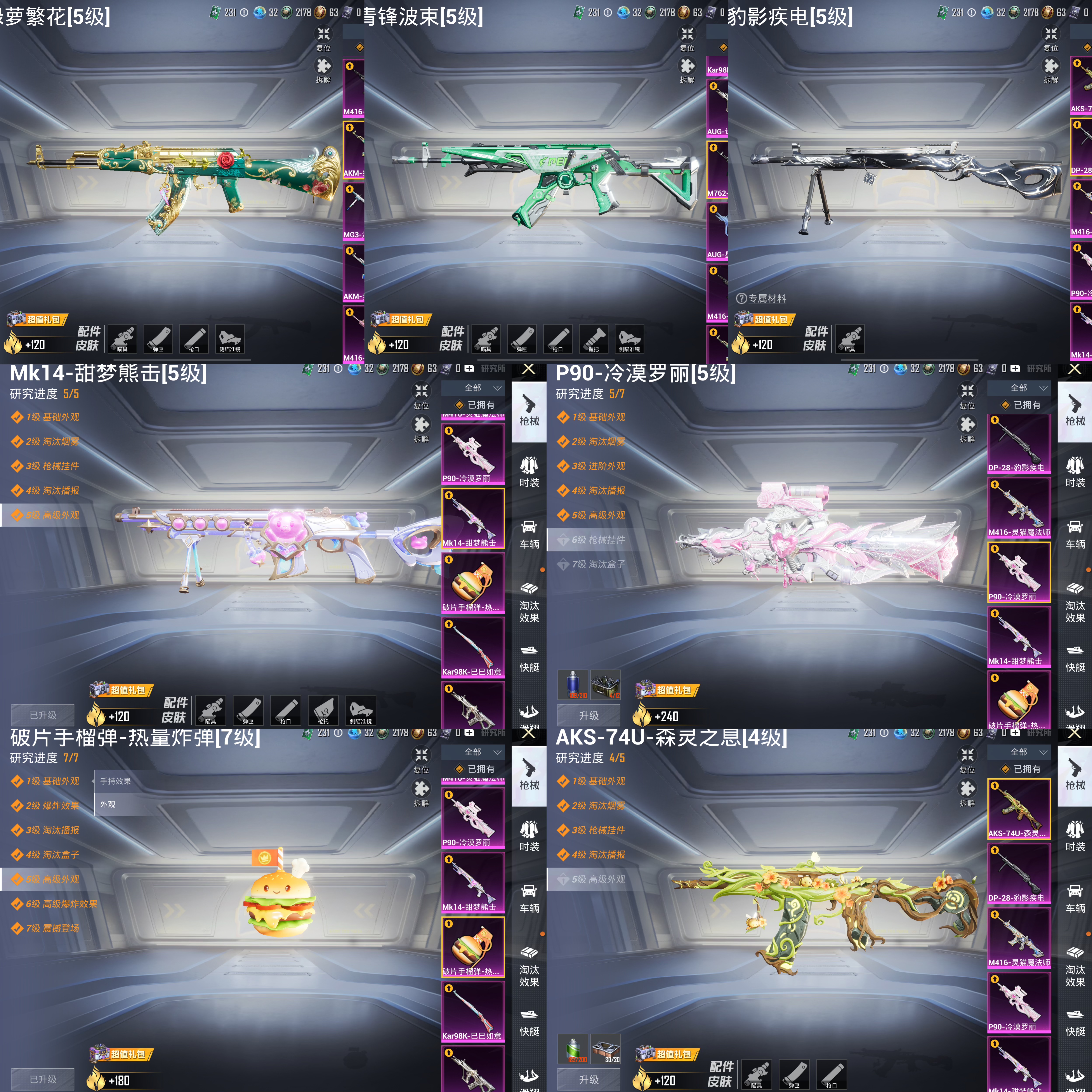 14粉,2载具,15特效枪,212套装,16王牌印记