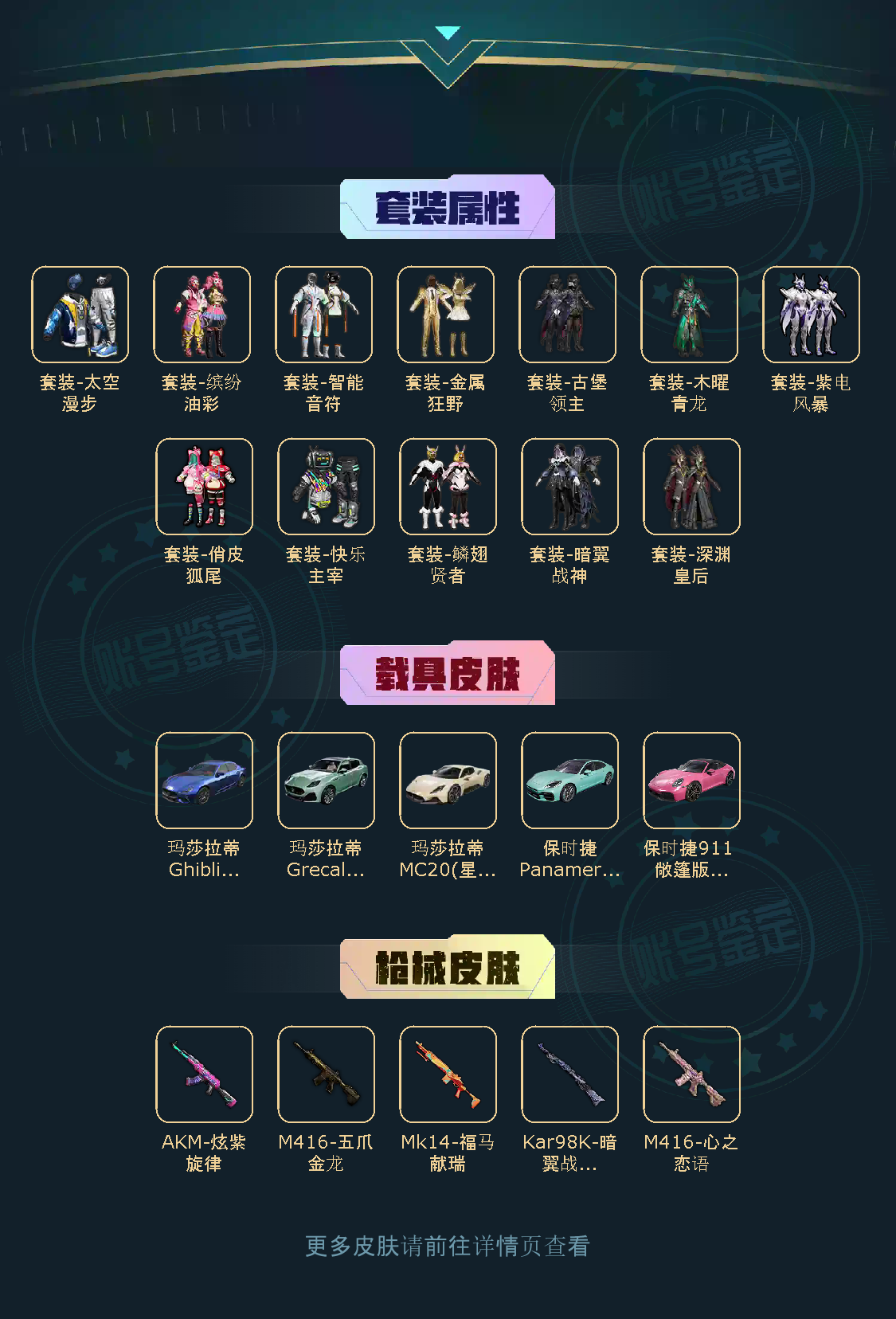 【粉色套装】套装-快乐主宰/套装-深渊皇后/套装-木曜青龙/套装-古堡领主/套装-鳞翅贤者/套装-金属狂野/套装-智能音符/套装-俏皮狐尾/套装-暗翼战神/套装-紫电风暴
