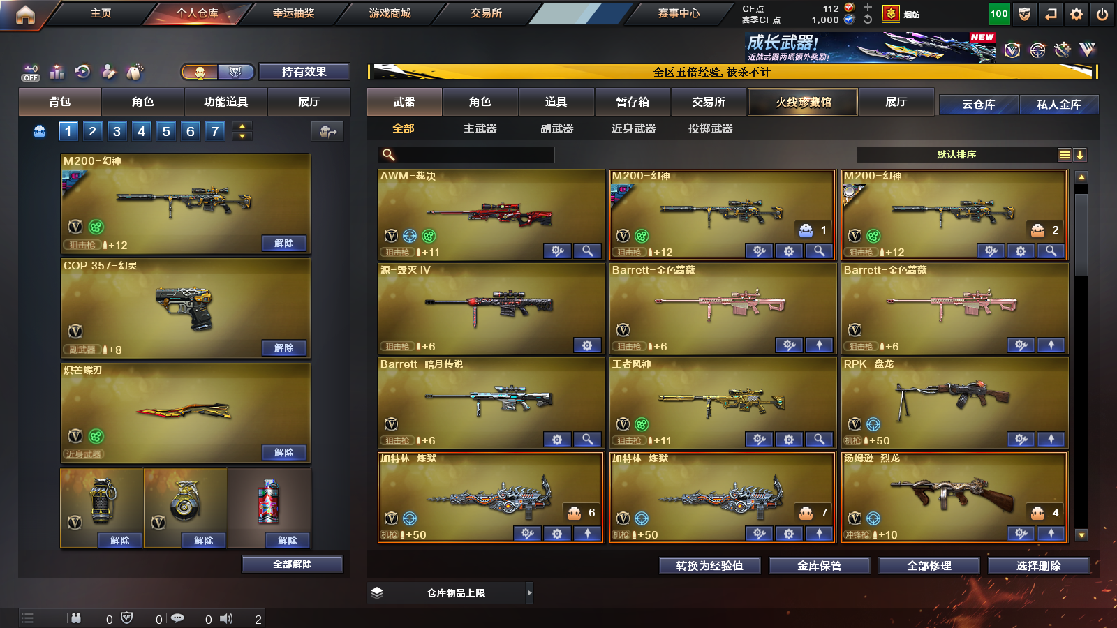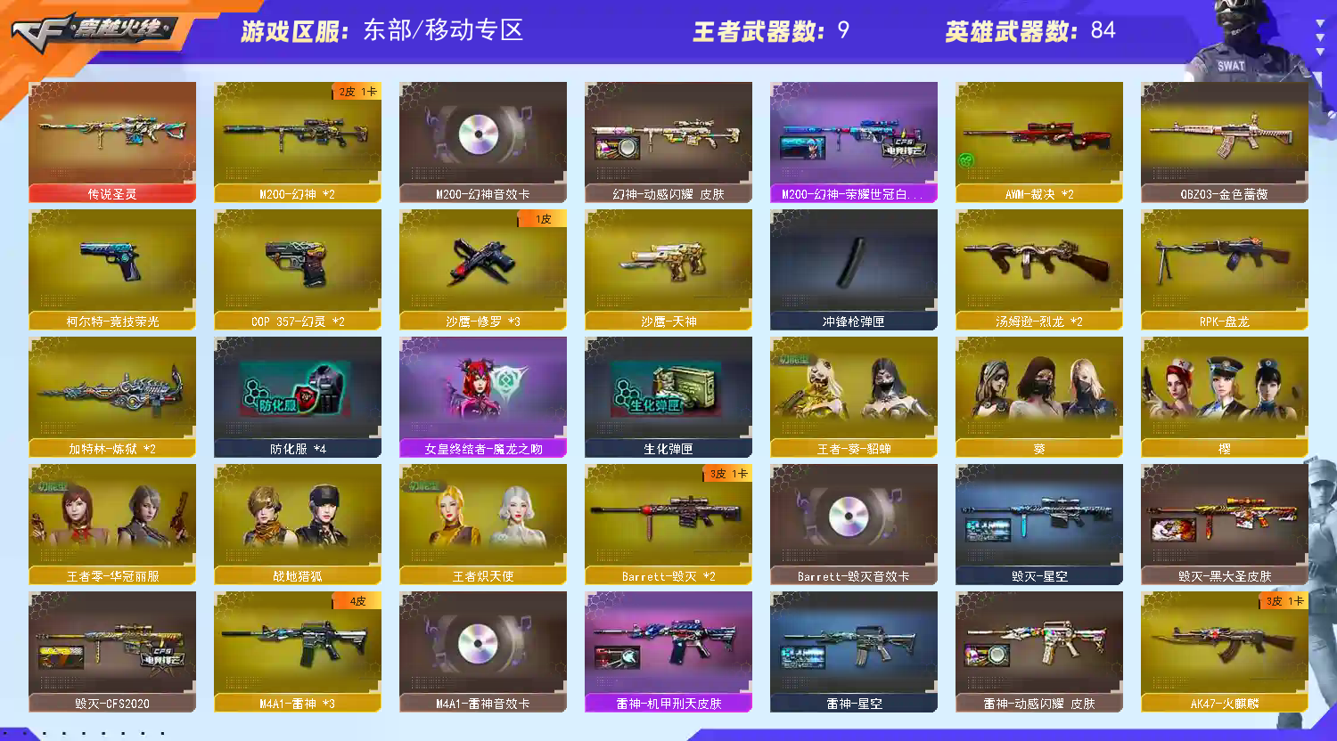 传说圣灵 幻神双皮三件套 幻神白鲨 幻神动感闪耀 王者风神 白虎 裁决 QBZ cop幻灵*2 荣光柯尔特 手枪子弹也拉满 雷神三件套 毁灭三件套 黑骑士三件套 火麒麟三件套 5个三件套 VIP6 荣耀之巅