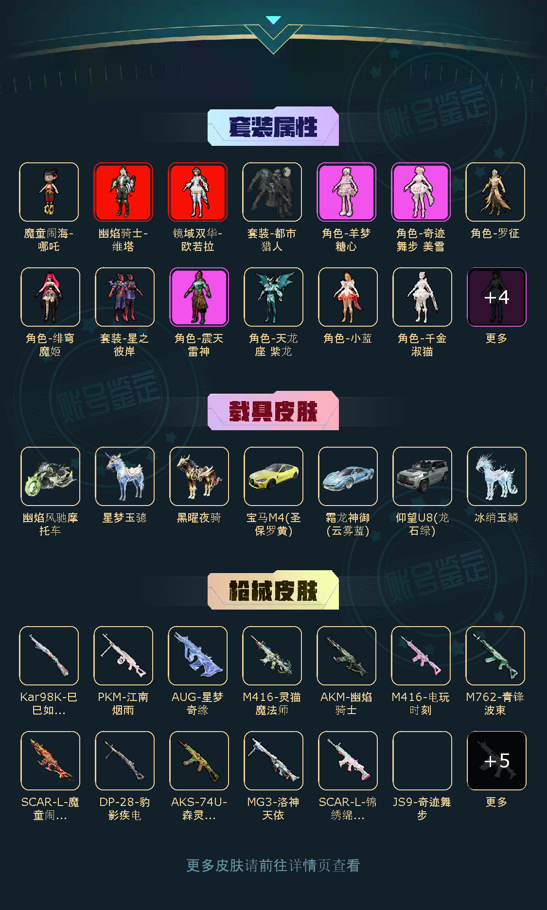 【稀有资产】幽焰骑士-维塔[1级]/角色-魔童闹海-哪吒[3级]/镜域双华-欧若拉[1级]/角色-千金淑猫/角色-羊梦糖心/SCAR-L-魔童闹海 哪吒/M416-电玩时刻/AUG-星梦奇缘/M416-灵猫魔法师/AKM-幽焰骑士/角色-Mark.06/套装-龟仙人/套装-极光猎影/玩偶服-卖崽青蛙/玩偶服-懒羊羊/玩偶服-美羊羊/玩偶服-喜羊羊/角色-粉雾星云/角色-申公豹/角色-敖闰/角色-临安公主/角色-灵公主/角色-银尘/角色-情公主