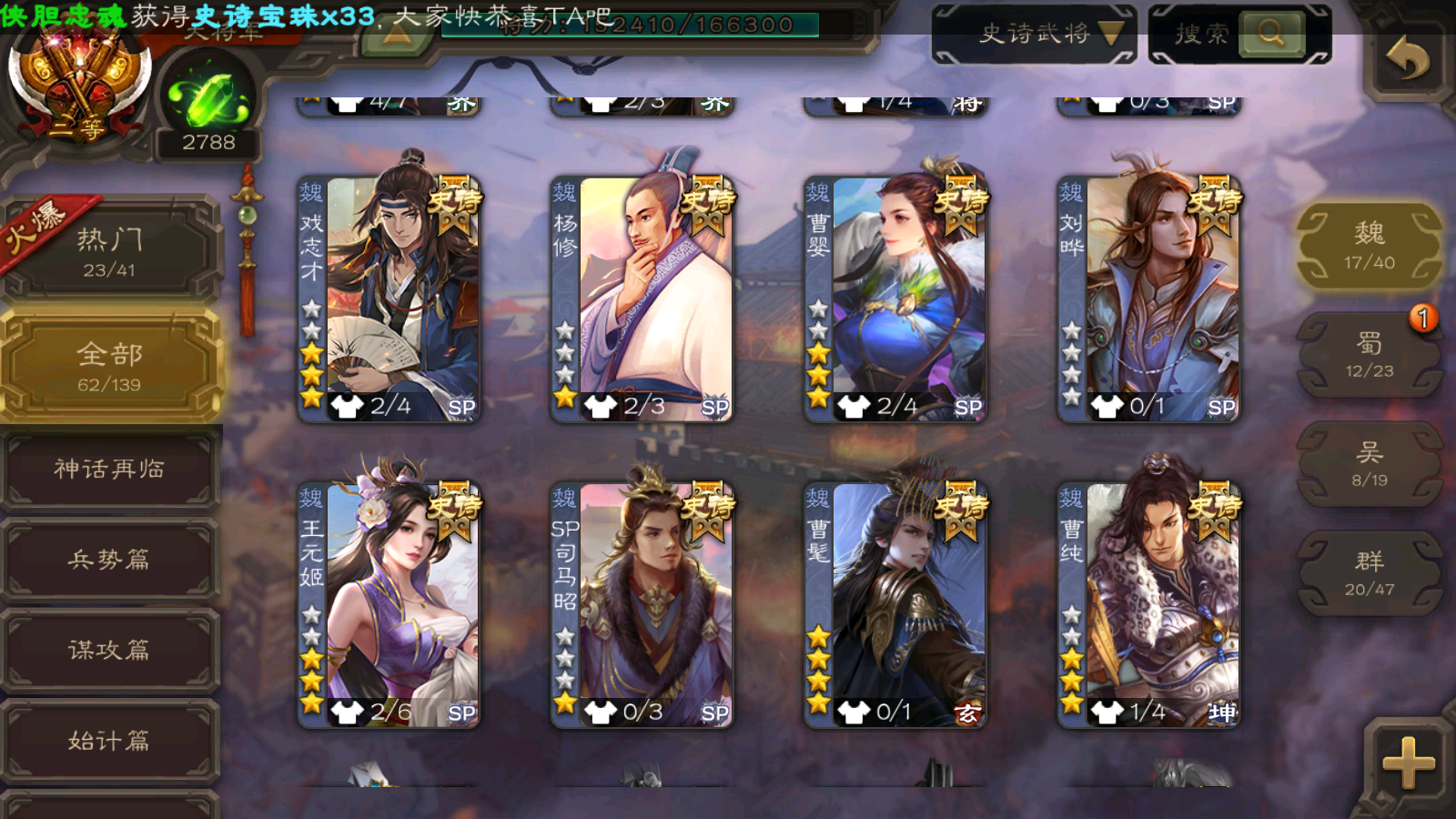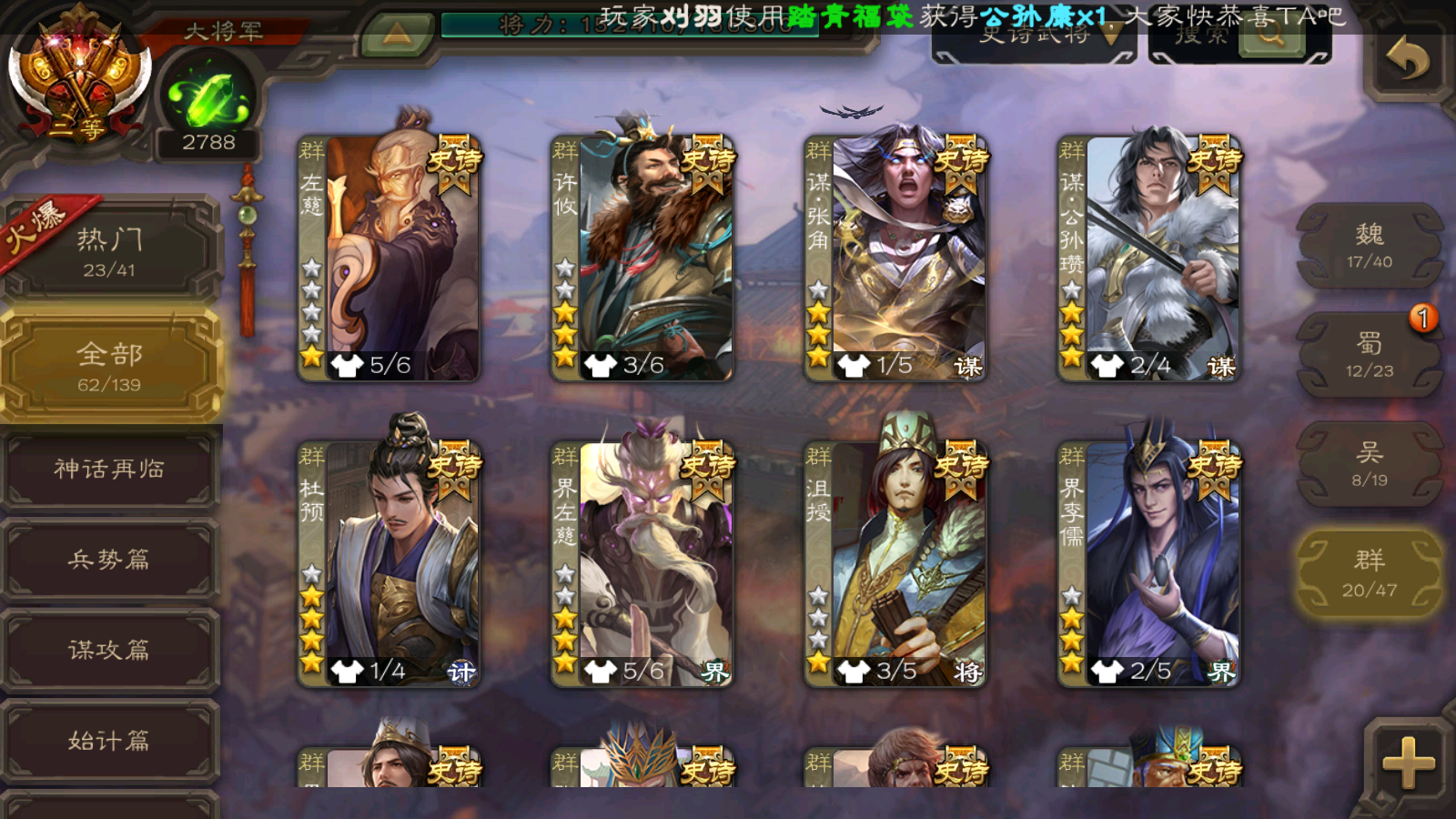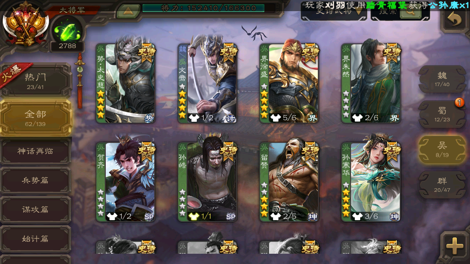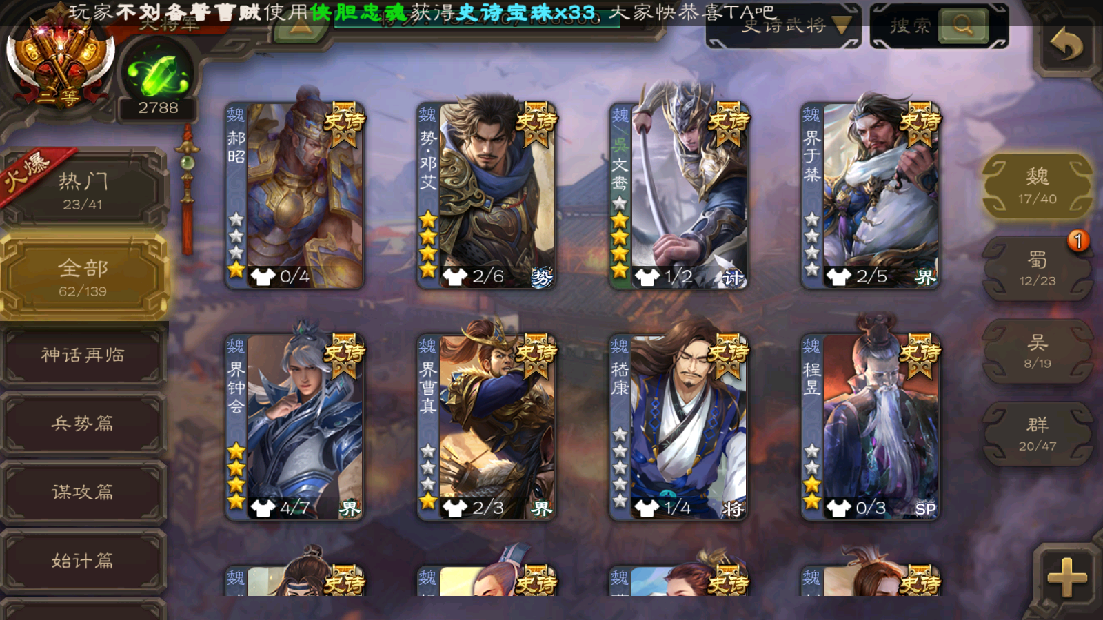 62/史诗武将数量