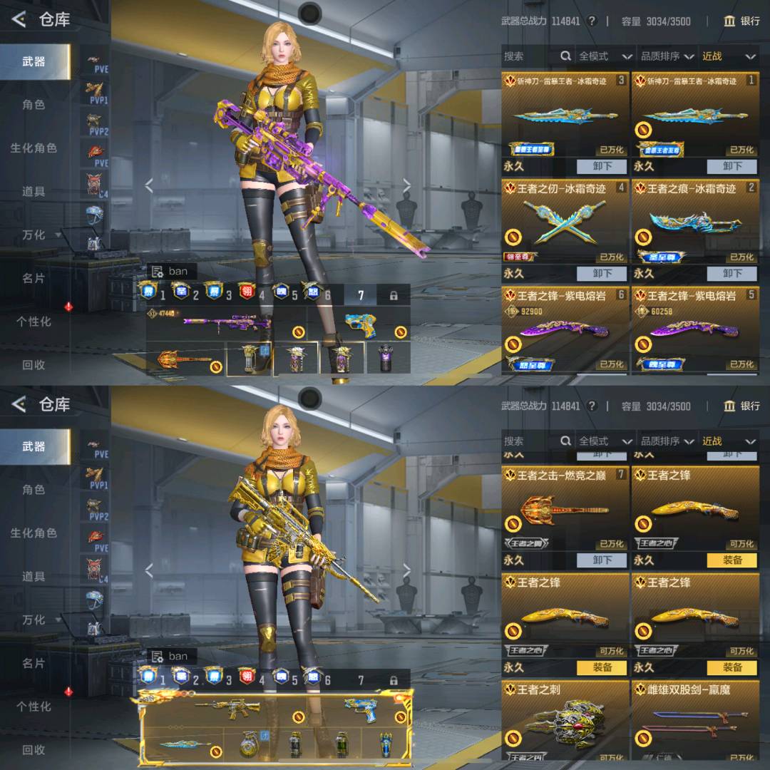 *2。武器-蟒蛇-奉先,武器-蟒蛇-妙才*4,武器-血月*2,武器-血不器-贝重塔-力拔山河,武器。迷你究极泰坦,武器-迷你饕餐,武-锹。孟德,武器-铁锹-未来战士,武器-雌雄双股剑,武器。雷霆*2,武器青龙偃月刀,武器。马来剑-毁灭*4,武器-马来剑-耀金伯爵,武器-鹰爪-谜城虹光觉醒,武器-麒麟刺,武器-麒麟刺-堕天神,武器-龙*2武器-龙爪手-致龙
