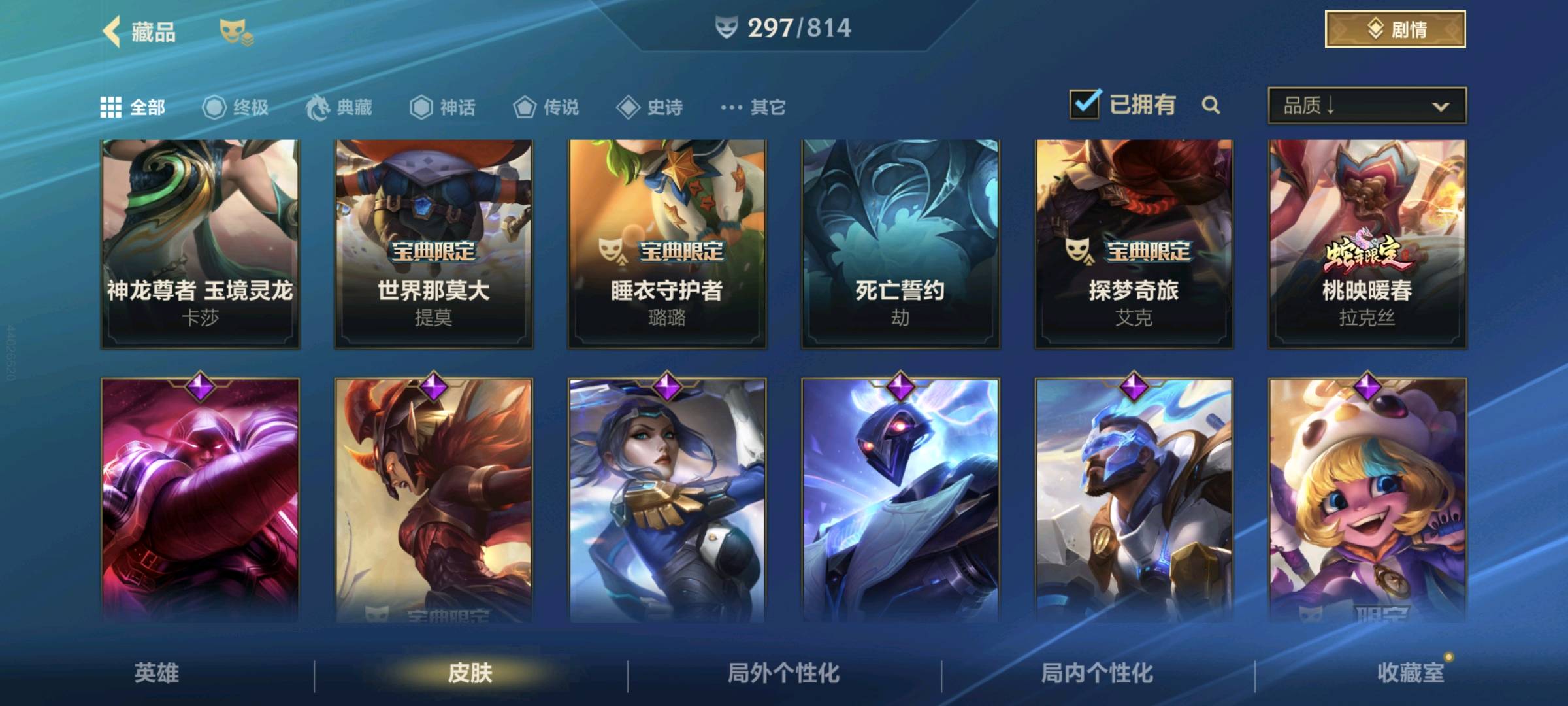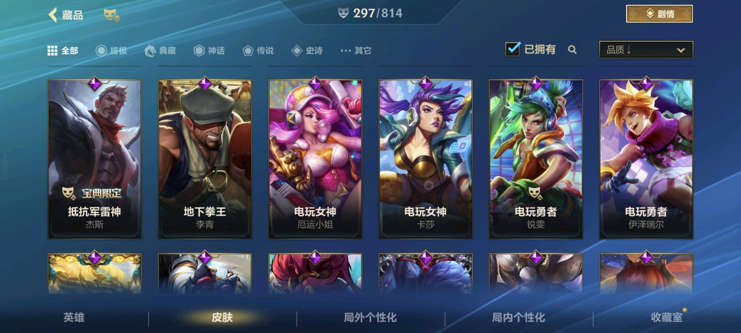 【安卓】 全马年限定皮肤,2神话,21传说,特别多的限定,史诗297皮肤,全英雄,排位白金,适合新手虐菜带妹子
