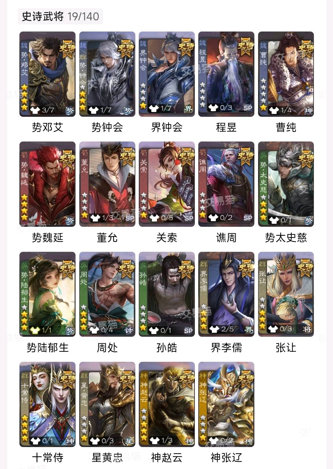 999/史诗武将数量