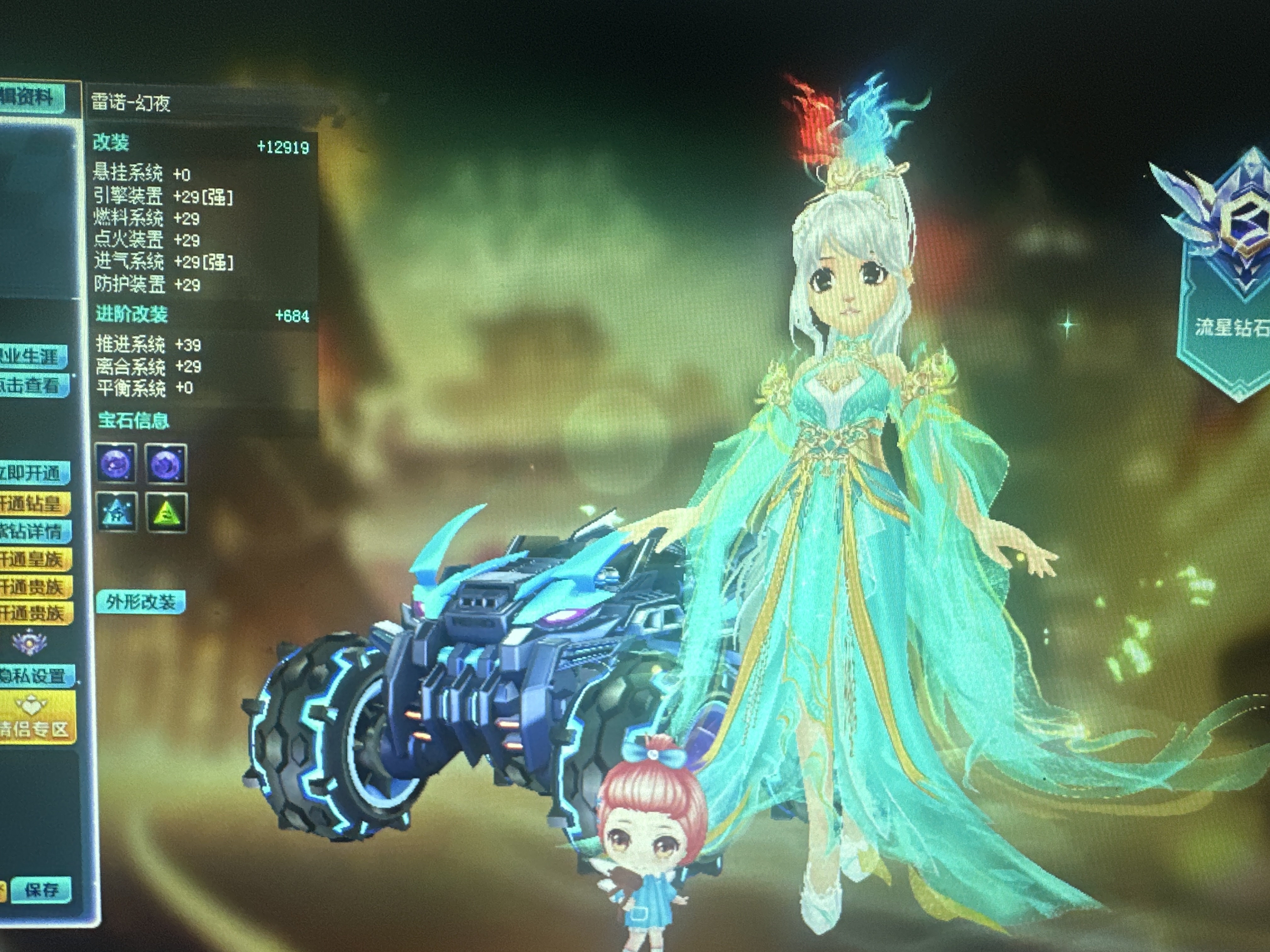 紫钻6/艾丽莎+10/玉麒麟29+双四/众神之神2皮29+双四/天雷诺3皮肤29+双四/雷诺幻夜7级29+双四